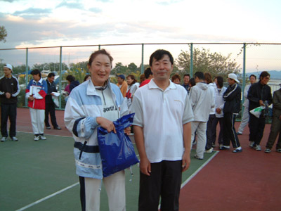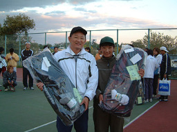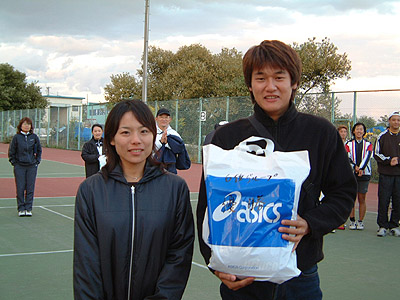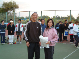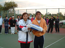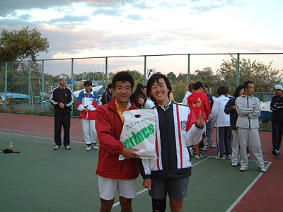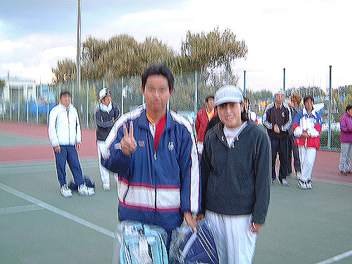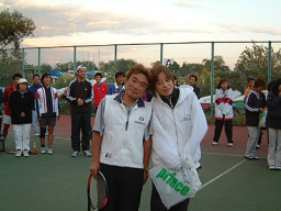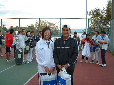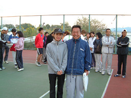 テニスに関しては竹村センセーの先生が奥さんです!コートで叱られてるセンセーを見るのは忍びないです。もっと上手くなって下さい。(主催者) |