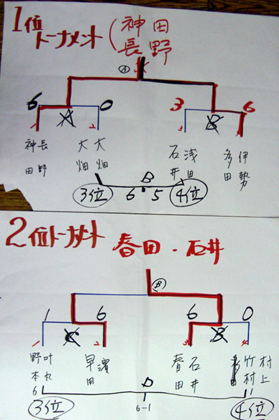 ぼちぼちでした!3位と4位トーナメントの成績表です。 |
