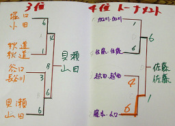 2位トーナメントは春田・亀丸が制し、準優勝大津TCの早田・濱組。3位は野本・叶丸組。高橋夫妻組でした。 |