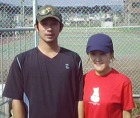 このショットは3位トーナメントの準決勝で、秋道ペアーに勝った際の記念写真で〜す! |