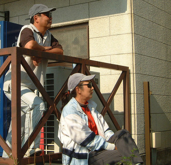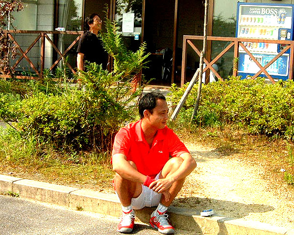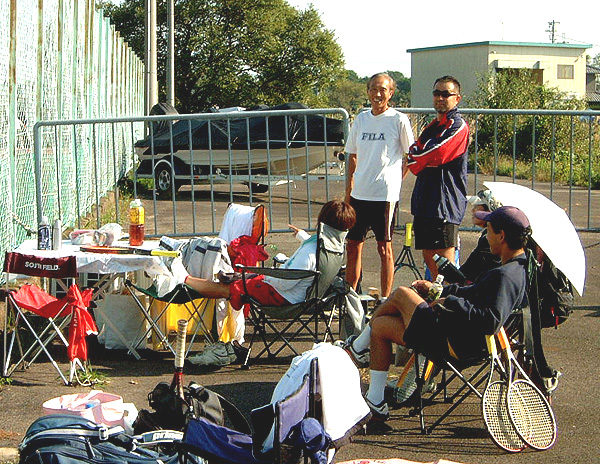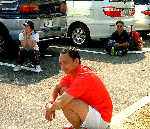 それぞれ日陰に入って、ゲームの組立を考えている人。