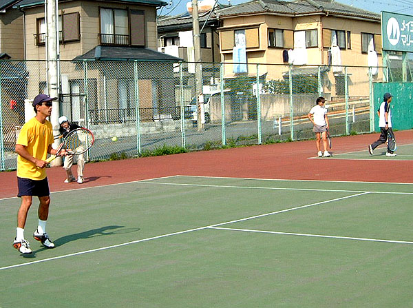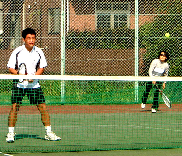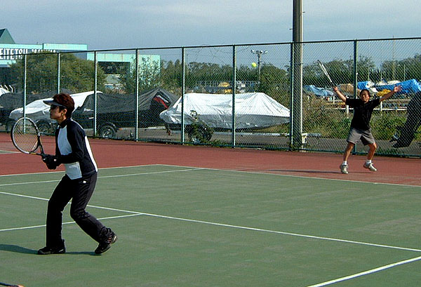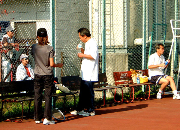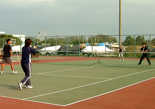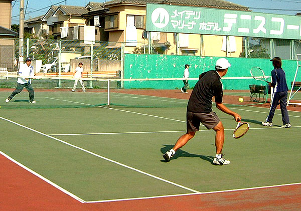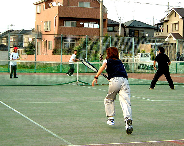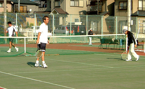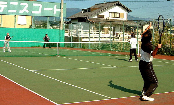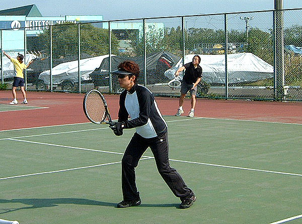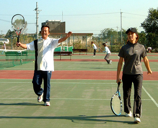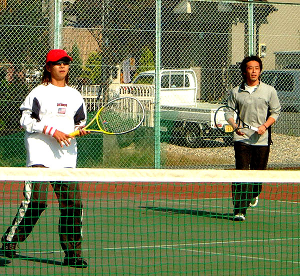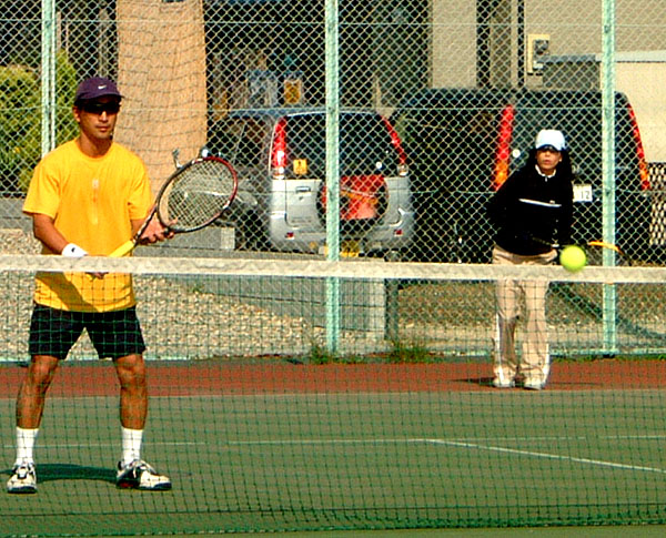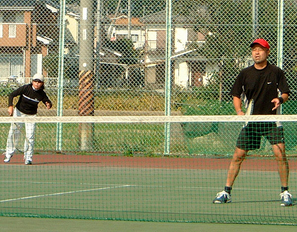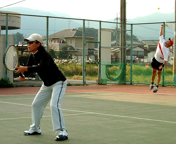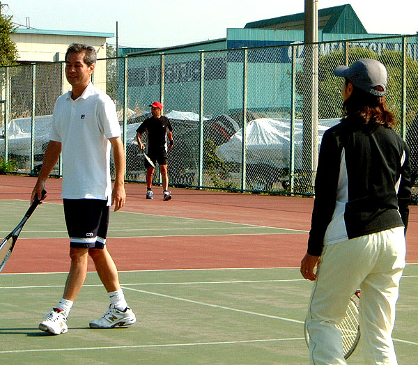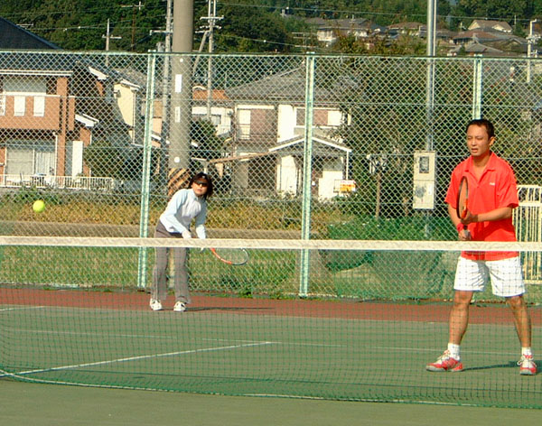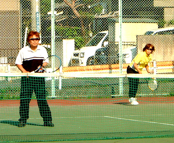 しっかりテニスやってますやん!前納夫婦ペアで〜〜す。