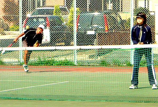 ご主人の渾身のサーブが・・・いとも簡単に返ってくるヤン! |