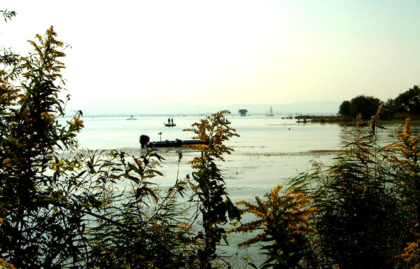 湖畔の穏やかな波が、これから始まる激戦を予感させる? |