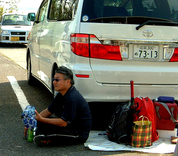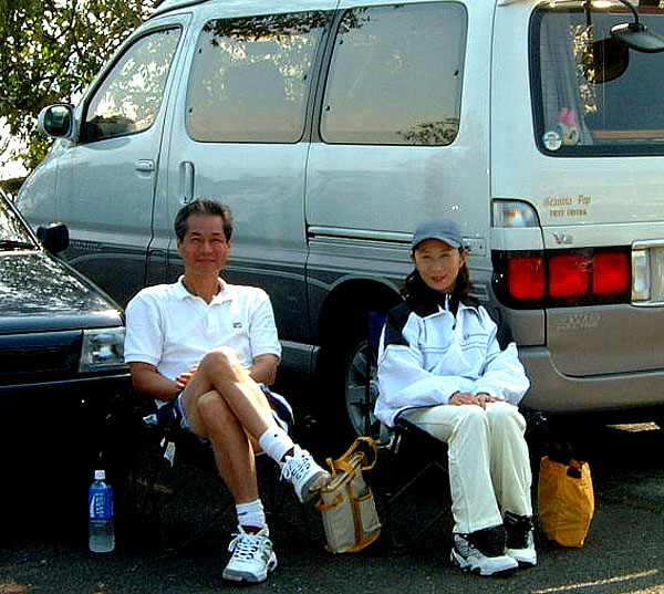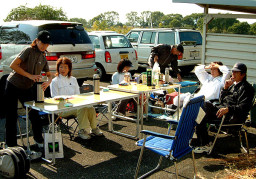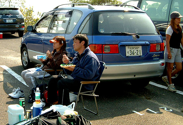 早くも昼食?余裕タップリの野本・山崎ペアです。