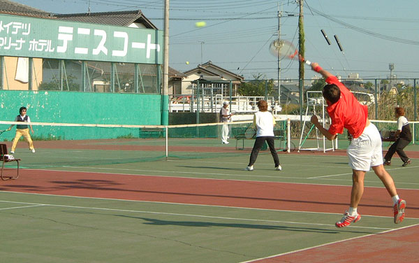 何もそんなに一生懸命サーブ打たなくっても・・・ |