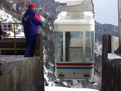 最盛期にはこのゴンドラに40人位詰め込まれてピストン運転でお客をさばいたことも!下りの2時間待ちはざらだった。 |
