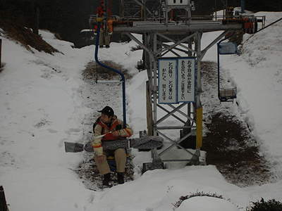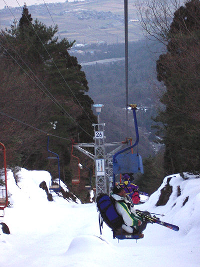 | 開設当初は日本一の長さを誇ったチェアーリフト。登山リフトは約15分かかる、一人で黙々受験勉強もこのリフトでした。 |